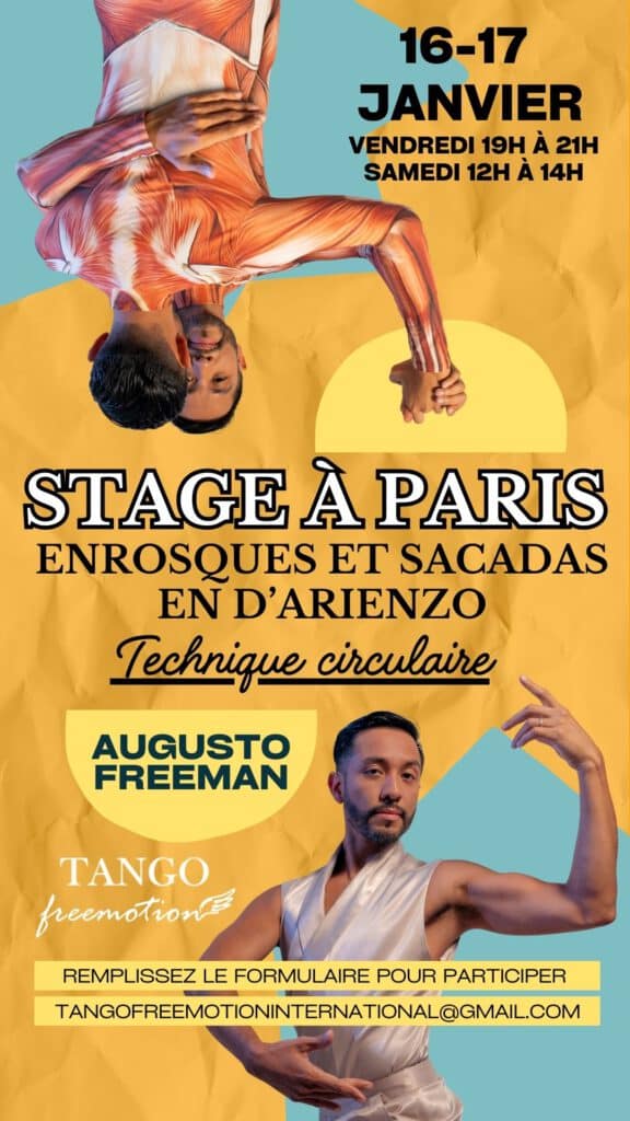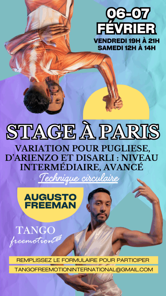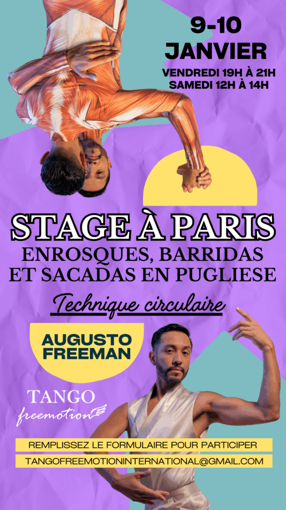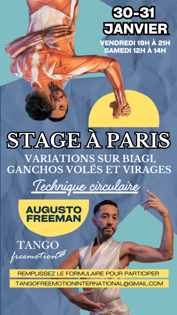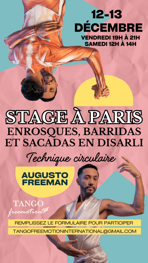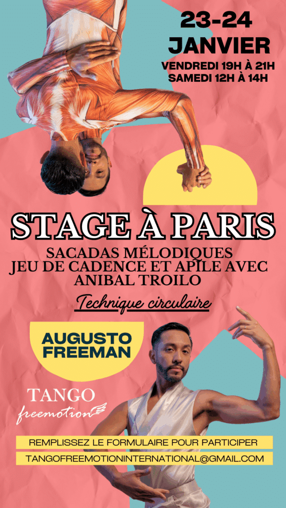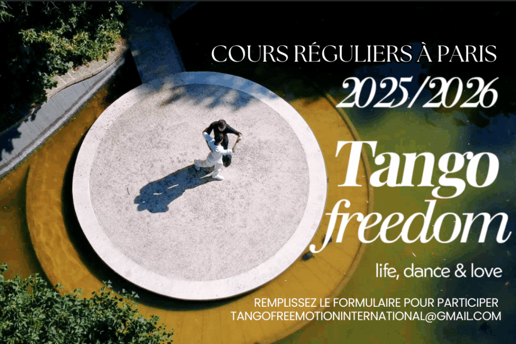 Participa de los cursos regualres de Tangofreemotion los viernes de 19h a 21h y los sábados de 12h a 14h en nuestos estudios de París 9 y París 20.